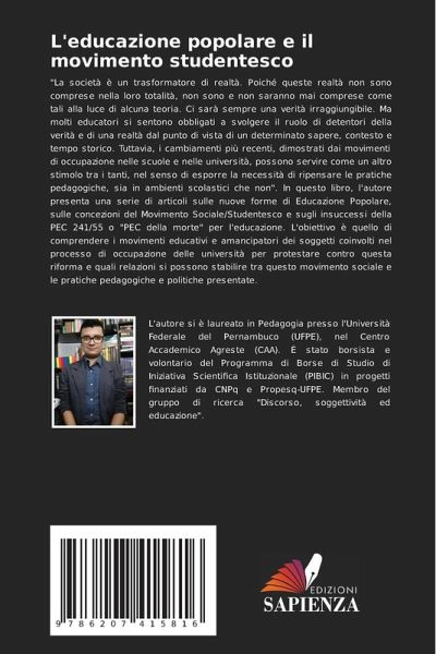 "La società è un trasformatore di realtà. Poiché queste realtà non sono comprese nella loro totalità, non sono e non saranno mai comprese come tali alla luce di alcuna teoria. Ci sarà sempre una verità irraggiungibile. Ma molti educatori si sentono obbligati a svolgere il ruolo di detentori della verità e di una realtà dal punto di vista di un determinato sapere, contesto e tempo storico. Tuttavia, i cambiamenti più recenti, dimostrati dai movimenti di occupazione nelle scuole e nelle università, possono servire come un altro stimolo tra i tanti, nel senso di esporre la necessità di ripensare le pratiche pedagogiche, sia in ambienti scolastici che non". In questo libro, l'autore presenta una serie di articoli sulle nuove forme di Educazione Popolare, sulle concezioni del Movimento Sociale/Studentesco e sugli insuccessi della PEC 241/55 o "PEC della morte" per l'educazione. L'obiettivo è quello di comprendere i movimenti educativi e amancipatori dei soggetti coinvolti nel processo di occupazione delle università per protestare contro questa riforma e quali relazioni si possono stabilire tra questo movimento sociale e le pratiche pedagogiche e politiche presentate.