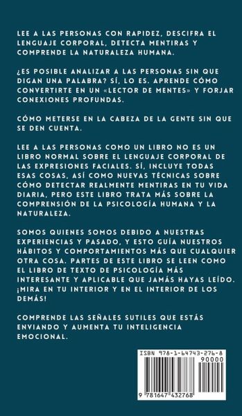 Lee a las personas con rapidez, descifra el lenguaje corporal, detecta mentiras y comprende la naturaleza humana. ¿Es posible analizar a las personas sin que digan una palabra? Sí, lo es. Aprende cómo convertirte en un lector de mentes y forjar conexiones profundas. Cómo meterse en la cabeza de la gente sin que se den cuenta. Lee a las personas como un libro no es un libro normal sobre el lenguaje corporal de las expresiones faciales. Sí, incluye todas esas cosas, así como nuevas técnicas sobre cómo detectar realmente mentiras en tu vida diaria, pero este libro trata más sobre la comprensión…mehr
