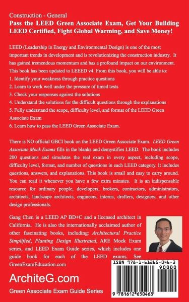 Pass the LEED Green Associate Exam, Get Your Building LEED Certified, Fight Global Warming, and Save Money! The USGBC released LEED v4 in GreenBuild International Conference and Expo in November, 2013. The GBCI started to include the new LEED v4 content for all LEED exams in June 2014. We have incorporated the new LEED v4 content in this book. LEED (Leadership in Energy and Environmental Design) is one of the most important trends in development and is revolutionizing the construction industry. It has gained tremendous momentum and has a profound impact on our environment. From this book, you will be able to: 1. Identify your weakness through practice questions 2. Learn to work well under the pressure of timed tests 3. Check your responses against the solutions 4. Understand the solutions for the difficult questions through the explanations 5. Fully understand the scope, difficulty level, and format of the LEED Green Associate Exam 6. Learn how to pass the LEED Green Associate Exam. There is NO official GBCI book on the LEED Green Associate Exam. "LEED Green Associate Mock Exams" fills in the blanks and demystifies LEED. The book includes 200 questions and simulates the real exam in every aspect, including scope, difficulty level, format, and number of questions in each LEED category. It includes questions, answers, and explanations. This book is small and easy to carry around. You can read it whenever you have a few extra minutes. It is an indispensable resource for ordinary people, developers, brokers, contractors, administrators, architects, landscape architects, engineers, interns, drafters, designers, and other design professionals. All our books are available at GreenExamEducation.com Check out FREE tips and info for all LEED Exams and ARE Exams at GeeForum.com, yo
