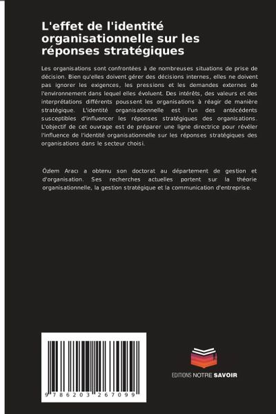 Les organisations sont confrontées à de nombreuses situations de prise de décision. Bien qu'elles doivent gérer des décisions internes, elles ne doivent pas ignorer les exigences, les pressions et les demandes externes de l'environnement dans lequel elles évoluent. Des intérêts, des valeurs et des interprétations différents poussent les organisations à réagir de manière stratégique. L'identité organisationnelle est l'un des antécédents susceptibles d'influencer les réponses stratégiques des organisations. L'objectif de cet ouvrage est de préparer une ligne directrice pour révéler l'influence de l'identité organisationnelle sur les réponses stratégiques des organisations dans le secteur choisi.