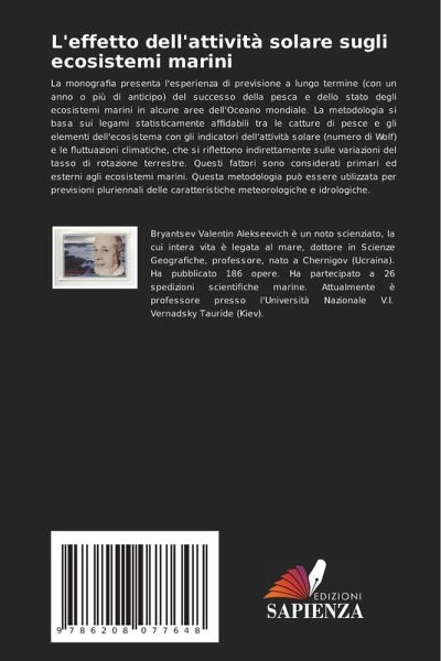 La monografia presenta l'esperienza di previsione a lungo termine (con un anno o più di anticipo) del successo della pesca e dello stato degli ecosistemi marini in alcune aree dell'Oceano mondiale. La metodologia si basa sui legami statisticamente affidabili tra le catture di pesce e gli elementi dell'ecosistema con gli indicatori dell'attività solare (numero di Wolf) e le fluttuazioni climatiche, che si riflettono indirettamente sulle variazioni del tasso di rotazione terrestre. Questi fattori sono considerati primari ed esterni agli ecosistemi marini. Questa metodologia può essere utilizzata per previsioni pluriennali delle caratteristiche meteorologiche e idrologiche.