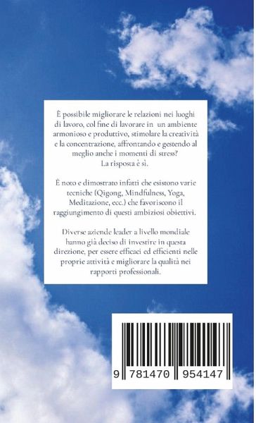 È possibile migliorare le relazioni nei luoghi di lavoro, per lavorare in modo più armonioso e produttivo, con maggiore creatività e concentrazione, affrontando e gestendo al meglio anche i momenti di stress? La risposta è si. È noto e dimostrato che esistono varie tecniche (Qigong, Mindfulness, Yoga, Meditazione, ecc.) che possono aiutare a raggiungere questi ambiziosi obiettivi. Varie aziende leader a livello mondiale hanno già deciso di investire in questa direzione, per essere efficaci ed efficienti nelle proprie attività e per lavorare nel modo migliore con gli altri. Il ricorso a tali metodi permette infatti di: ¿ essere concentrati nel raggiungimento degli obiettivi, scegliendo di direzionare l'attenzione verso ciò che si ha intenzione di raggiungere, evitando di disperderla; ¿ essere consapevoli degli ostacoli, delle tensioni, dei blocchi (fisici, emotivi o mentali) e padroneggiare con efficacia gli strumenti utili per superarli; ¿ curare le relazioni e la comunicazione, eliminando gli ostacoli che impediscono il mantenimento di un buon clima aziendale; ¿ accettare i cambiamenti e affrontare con serenità le eventuali difficoltà da essi derivanti; ¿ coltivare la capacità di intuire e realizzare idee innovative - predisposizione molto importante soprattutto in questo periodo storico - e permettere così l'aumento della creatività e della produttività. Il presente libro nasce con l'intento di proporre e presentare, in maniera semplice e chiara, un supporto, teorico e pratico, a tutte quelle persone che svolgono la loro attività in organizzazioni di carattere imprenditoriale, sanitario, scolastico e di altro tipo, che intendano migliorare le loro competenze enfatizzando l'aspetto creativo e innovativo, che oggi più che mai viene richiesto per favorire lo sviluppo personale e dei relativi team di lavoro. L'intenzione è quella di condividere utili metodi integrativi nella gestione delle attività, che possano contribuire a migliorare quello che tanti imprenditori hanno già dimostrato di saper fare abilmente, nella creazione delle loro attività e nei rapporti con i collaboratori.