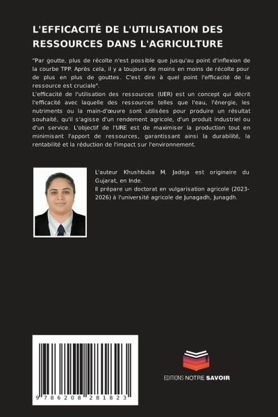 "Par goutte, plus de récolte n'est possible que jusqu'au point d'inflexion de la courbe TPP. Après cela, il y a toujours de moins en moins de récolte pour de plus en plus de gouttes. C'est dire à quel point l'efficacité de la ressource est cruciale".L'efficacité de l'utilisation des ressources (UER) est un concept qui décrit l'efficacité avec laquelle des ressources telles que l'eau, l'énergie, les nutriments ou la main-d'oeuvre sont utilisées pour produire un résultat souhaité, qu'il s'agisse d'un rendement agricole, d'un produit industriel ou d'un service. L'objectif de l'URE est de maximiser la production tout en minimisant l'apport de ressources, garantissant ainsi la durabilité, la rentabilité et la réduction de l'impact sur l'environnement.