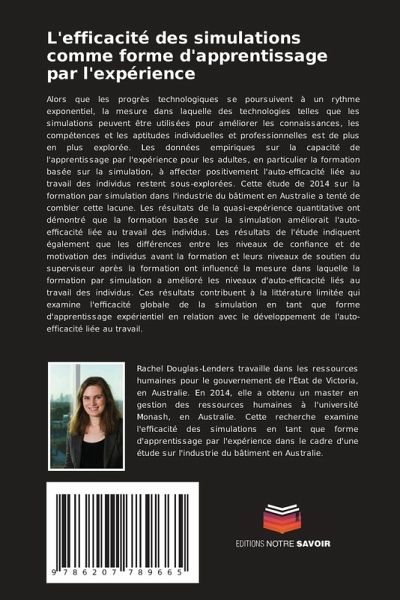 Alors que les progrès technologiques se poursuivent à un rythme exponentiel, la mesure dans laquelle des technologies telles que les simulations peuvent être utilisées pour améliorer les connaissances, les compétences et les aptitudes individuelles et professionnelles est de plus en plus explorée. Les données empiriques sur la capacité de l'apprentissage par l'expérience pour les adultes, en particulier la formation basée sur la simulation, à affecter positivement l'auto-efficacité liée au travail des individus restent sous-explorées. Cette étude de 2014 sur la formation par simulation dans l'industrie du bâtiment en Australie a tenté de combler cette lacune. Les résultats de la quasi-expérience quantitative ont démontré que la formation basée sur la simulation améliorait l'auto-efficacité liée au travail des individus. Les résultats de l'étude indiquent également que les différences entre les niveaux de confiance et de motivation des individus avant la formation et leurs niveaux de soutien du superviseur après la formation ont influencé la mesure dans laquelle la formation par simulation a amélioré les niveaux d'auto-efficacité liés au travail des individus. Ces résultats contribuent à la littérature limitée qui examine l'efficacité globale de la simulation en tant que forme d'apprentissage expérientiel en relation avec le développement de l'auto-efficacité liée au travail.