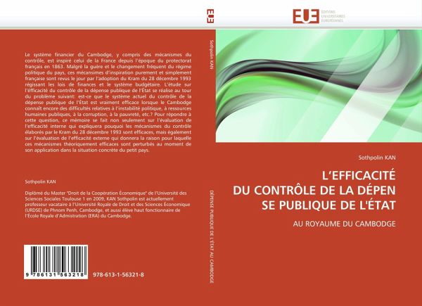 Le système financier du Cambodge, y compris des mécanismes du contrôle, est inspiré celui de la France depuis l'époque du protectorat français en 1863. Malgré la guère et le changement fréquent du régime politique du pays, ces mécansimes d'inspiration purement et simplement française sont revus le jour par l'adoption du Kram du 28 décembre 1993 régissant les lois de finances et le système budgétaire. L'étude sur l'éfficacité du contrôle de la dépense publique de l'État se réalise au tour du problème suivant: est-ce que le système actuel du contrôle de la dépense publique de l'État est vraiment efficace lorsque le Cambodge connaît encore des difficultés relatives à l'instabilité politique, à ressources humaines publiques, à la corruption, à la pauvreté, etc.? Pour répondre à cette question, ce mémoire se fait non seulement sur l'évaluation de l'efficacité interne qui expliquera pouquoi les mécanismes du contrôle élaborés par le Kram du 28 décembre 1993 sont efficaces, mais également sur l'évaluation de l'efficacité externe qui donnera la raison pour laquelle ces mécanismes théoriquement efficaces sont perturbés au moment de son application dans la situation concrète du petit pays.