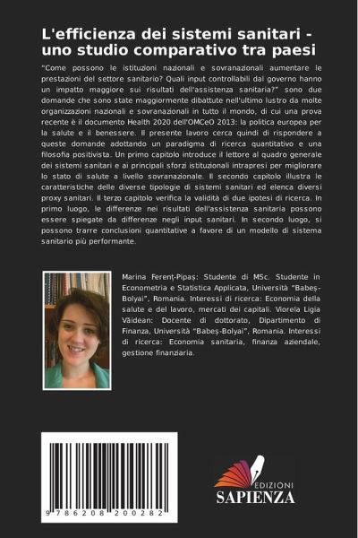"Come possono le istituzioni nazionali e sovranazionali aumentare le prestazioni del settore sanitario? Quali input controllabili dal governo hanno un impatto maggiore sui risultati dell'assistenza sanitaria?" sono due domande che sono state maggiormente dibattute nell'ultimo lustro da molte organizzazioni nazionali e sovranazionali in tutto il mondo, di cui una prova recente è il documento Health 2020 dell'OMCeO 2013: la politica europea per la salute e il benessere. Il presente lavoro cerca quindi di rispondere a queste domande adottando un paradigma di ricerca quantitativo e una filosofia positivista. Un primo capitolo introduce il lettore al quadro generale dei sistemi sanitari e ai principali sforzi istituzionali intrapresi per migliorare lo stato di salute a livello sovranazionale. Il secondo capitolo illustra le caratteristiche delle diverse tipologie di sistemi sanitari ed elenca diversi proxy sanitari. Il terzo capitolo verifica la validità di due ipotesi di ricerca. In primo luogo, le differenze nei risultati dell'assistenza sanitaria possono essere spiegate da differenze negli input sanitari. In secondo luogo, si possono trarre conclusioni quantitative a favore di un modello di sistema sanitario più performante.