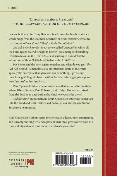 Fiction. The Left Behind novels (about the so-called "Rapture" in which all the born-agains ascend straight to heaven) are among the bestselling Christian books in the US, describing in lurid detail the adventures of those "left behind" to battle the Anti-Christ. Put Bisson and the Born-Agains together, and what do you get? THE LEFT LEFT BEHIND--a sardonic, merciless, tasteless, take-no-prisoners satire of the entire apocalyptic enterprise that spares no one--predatory preachers, goth lingerie, Pacifica radio, Indian casinos, gangsta rap, and even "art cars" at Burning Man.