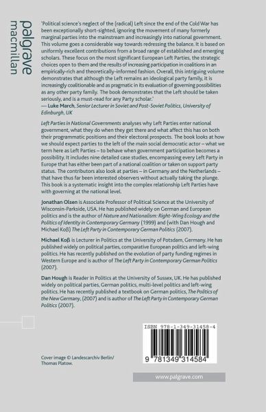 'Political science's neglect of the (radical) Left since the end of the Cold War has been exceptionally short-sighted, ignoring the movement of many formerly marginal parties into the mainstream and increasingly into national government. This volume goes a considerable way towards redressing the balance. It is based on uniformly excellent contributions from a broad range of established and emerging scholars. These focus on the most significant European Left parties, the strategic choices open to them and the results of increasing participation in coalitions in an empirically-rich and theoretically-informed fashion. Overall, this intriguing volume demonstrates that although the Left remains an ideological party family, it is increasingly coalitionable and as pragmatic in its evaluation of governing possibilities as any other party family. The book demonstrates that the Left should be taken seriously, and is a must-read for any Party scholar.' - Luke March, Senior Lecturer in Soviet and Post-Soviet Politics, University of Edinburgh, UK