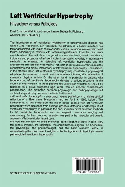The importance of left ventricular hypertrophy in cardiovascular disease has gained wide recognition. Left ventricular hypertrophy is a highly important risk factor associated with major cardiovascular events, including symptomatic heart failure, particularly in patients with systemic hypertension. Over the past years much has been learned about the genetics, molecular background, prevalence, incidence and prognosis of left ventricular hypertrophy. A variety of noninvasive methods has emerged for detecting left ventricular hypertrophy and the assessment of reversal of hypertrophy. Yet, a lot of controversy remains about the connotations and clinical implications of left ventricular hypertrophy. For instance, in the athlete's heart left ventricular hypertrophy may constitute a physiological adaptation to pressure overload, which normalizes following discontinuation of strenuous physical activity. On the other hand, in particular in patients with hypertension, left ventricular hypertrophy denotes a serious prognosis in the course of hypertension. In these patients left ventricular hypertrophy should be regarded as a grave prognostic sign rather than an innocent compensatory phenomenon. The distinction between physiologic and pathophysiologic left ventricular hypertrophy has been the basis for this book.