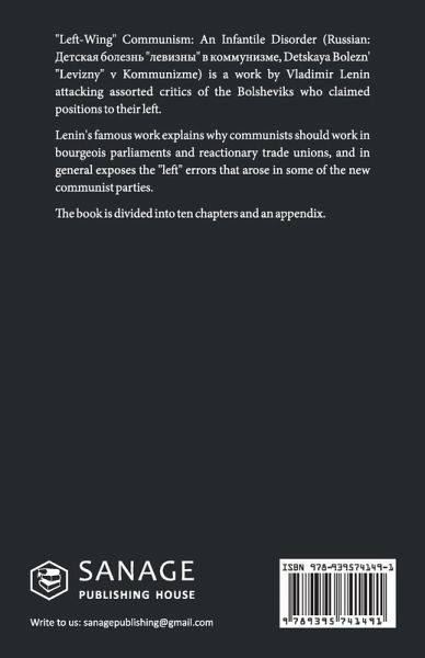 ""Left-Wing"" Communism: An Infantile Disorder (Russian: ¿¿¿¿¿¿¿ ¿¿¿¿¿¿¿ ""¿¿¿¿¿¿¿"" ¿ ¿¿¿¿¿¿¿¿¿¿, Detskaya Bolezn' ""Levizny"" v Kommunizme) is a work by Vladimir Lenin attacking assorted critics of the Bolsheviks who claimed positions to their left. Lenin's famous work explains why communists should work in bourgeois parliaments and reactionary trade unions, and in general exposes the ""left"" errors that arose in some of the new communist parties. The book is divided into ten chapters and an appendix.