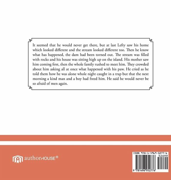 It seemed that he would never get there, but at last Lefty saw his home which looked different and the stream looked different too. Then he know what has happened, the dam had been torned out. The stream was filled with rocks and his house was sitting high up on the island. His mother saw him coming first, then the whole family rushed to meet him. They crowded about him asking all at once what happened with his paw. He cried as he told them how he was alone whole night caught in a trap but that the next morning a kind man and a boy had freed him. He said he would never be so afraid of men again.
