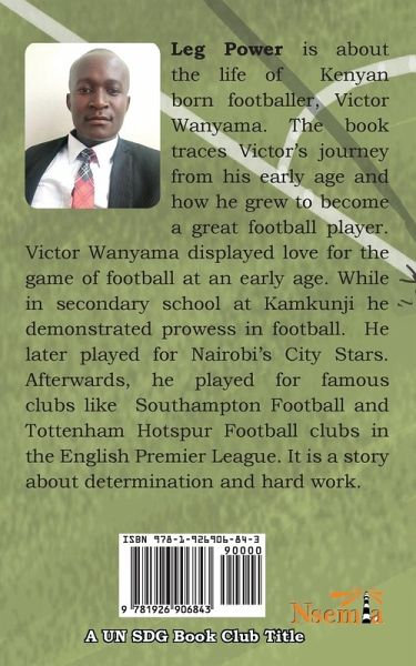 Leg Power is about the life of Kenyan-born footballer, Victor Wanyama. The book traces Victor's journey from his early age and how he grew to become a great football player. Victor Wanyama displayed a love for the game of football at an early age. While in secondary school at Kamkunji, he demonstrated prowess in football. He later played for Nairobi's City Stars. Afterwards, he played for famous clubs like Southampton Football and Tottenham Hotspur Football clubs in the English Premier League. It is a story about determination and hard work.