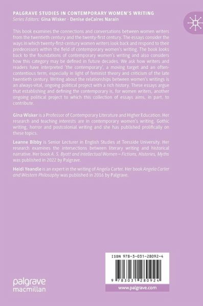 This book examines the connections and conversations between women writers from the twentieth century and the twenty-first century. The essays consider the ways in which twenty-first-century women writers look back and respond to their predecessors within the field of contemporary women's writing. The book looks back to the foundations of contemporary women's writing and also considers how this category may be defined in future decades. We ask how writers and readers have interpreted 'the contemporary', a moving target and an often-contentious term, especially in light of feminist theory and criticism of the late twentieth century. Writing about the relationships between women's writings is an always-vital, ongoing political project with a rich history. These essays argue that establishing and defining the contemporary is, for women writers, another ongoing political project to which this collection of essays aims, in part, to contribute.