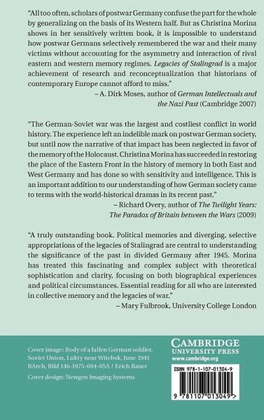 "All too often, scholars of postwar Germany confuse the part for the whole by generalizing on the basis of its Western half. But as Christina Morina shows in her sensitively written book, it is impossible to understand how postwar Germans selectively remembered the war and their many victims without accounting for the asymmetry and interaction of rival eastern and western memory regimes. Legacies of Stalingrad is a major achievement of research and reconceptualization that historians of contemporary Europe cannot afford to miss." - A. Dirk Moses, author of German Intellectuals and the Nazi Past (Cambridge 2007)