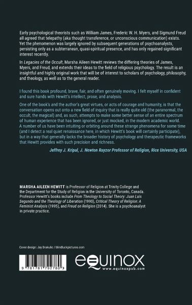 Early psychological theorists such as William James, Frederic W. H. Myers, and Sigmund Freud all agreed that telepathy (aka thought transference, or unconscious communication) exists. Yet the phenomenon was largely ignored by subsequent generations of psychoanalysts, persisting only as a subterranean, quasi-spiritual presence, and has only regained significant interest recently. In Legacies of the Occult, Marsha Aileen Hewitt reviews the differing theories of James, Myers, and Freud, and extends their ideas to the field of religious psychology. The result is an insightful and highly original work that will be of interest to scholars of psychology, philosophy, and theology, as well as to the general reader.