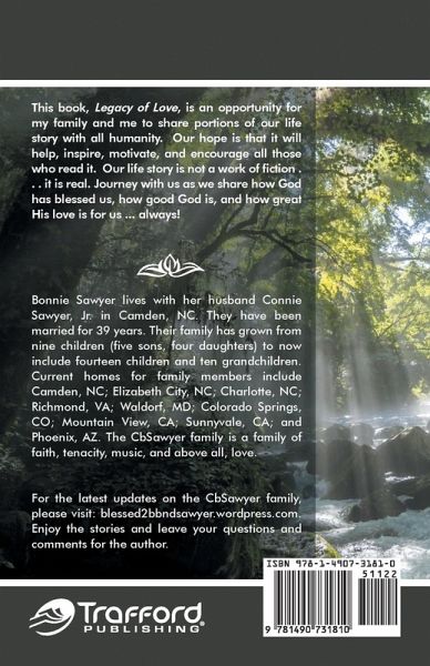This book, Legacy of Love, is an opportunity for my family and me to share portions of our life story with all humanity. Our hope is that it will help, inspire, motivate, and encourage all those who read it. Our life story is not a work of fiction . . . it is real. Journey with us and allow us to share with you how blessed we are, how good God is, and how great His love is for us . . . always!