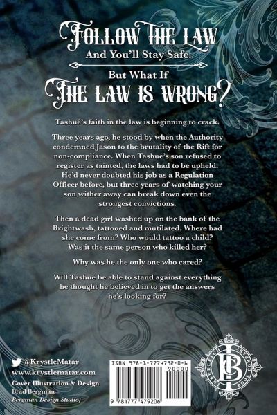 Follow the law and you'll stay safe. But what if the law is wrong? Tashué's faith in the law is beginning to crack. Three years ago, he stood by when the Authority condemned Jason to the brutality of the Rift for non-compliance. When Tashué's son refused to register as tainted, the laws had to be upheld. He'd never doubted his job as a Regulation Officer before, but three years of watching your son wither away can break down even the strongest convictions. Then a dead girl washed up on the bank of the Brightwash, tattooed and mutilated. Where had she come from? Who would tattoo a child? Was it the same person who killed her? Why was he the only one who cared?