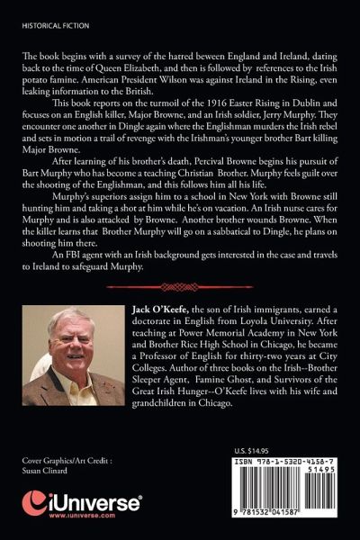 The book begins with a survey of the hatred beween England and Ireland, dating back to the time of Queen Elizabeth, and then is followed by references to the Irish potato famine. American President Wilson was against Ireland in the Rising, even leaking information to the British. This book reports on the turmoil of the 1916 Easter Rising in Dublin and focuses on an English killer, Major Browne, and an Irish soldier, Jerry Murphy. They encounter one another in Dingle again where the Englishman murders the Irish rebel and sets in motion a trail of revenge with the Irishman's younger brother Bart killing Major Browne. After learning of his brother's death, Percival Browne begins his pursuit of Bart Murphy who has become a teaching Christian Brother. Murphy feels guilt over the shooting of the Englishman, and this follows him all his life. Murphy's superiors assign him to a school in New York with Browne still hunting him and taking a shot at him while he's on vacation. An Irish nurse cares for Murphy and is also attacked by Browne. Another brother wounds Browne. When the killer learns that Brother Murphy will go on a sabbatical to Dingle, he plans on shooting him there. An FBI agent with an Irish background gets interested in the case and travels to Ireland to safeguard Murphy.