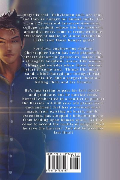 Magic is real. Babylonian gods are real, and they hunger for human souls. But Christopher Tatsu knows nothing about that - he's just an engineer looking for his first job after college. But his dreams tell another story - dreams of magic, of gargoyles, and of an anime-like elf. It gets weirder when the dreams come true, and Chris discovers that he can use magic. Except, magic can't be real, can it? While struggling to come to terms with what he has seen and done, Chris learns about the Sentinels and their mission - protect the Barrier, a 4,000-year-old enchantment that has blocked magic from Earth and kept the Babylonian god Marduk at bay. Marduk's half-son Nabu has fractured the Barrier, and as magic courses into the fabric of Earth again, chaos and destruction follows. Whether he believes in magic or not, Chris becomes embroiled in the conflict for the fate of the Barrier, and the future of humanity. As the conflict escalates, one inescapable fact presents itself - Chris is tied to the Barrier more closely than anyone could have imagined. So much for those job interviews.