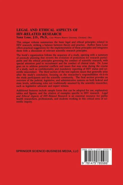 The motivation and inspiration for this book come directly from expe- ences with clients during the years that I practiced HIV-related law at the Legal Aid Society of San Diego, Inc. The issues discussed in this work reflect issues that arose on a recurring basis with clients participating in HIV research studies, with investigators calling for guidance on the legal implications of particular aspects of their proposed studies, and with research institutions and health care facilities struggling to make sense of legal maneuvers aimed at obtaining the records of their HIV-infected patients. It is impossible to thank each of these persons individually for their provocative questions and their insights. The discussion of ethical and legal issues relating to the design of clinical trials reflects questions raised during discussions with Donald J. Slymen, Ph.D. Don was one of the first researchers, in my realm of experience, to pay close attention to ethical concerns, and I am greatly appreciative of his contribution to both my professional growth and the development of various scenarios discussed in this text. The portions of this text dealing with confidentiality are the result of many hours of thoughtful discussion and analysis with Penn Lerblance, J.D., now deceased and still missed. Penn and I often participated together as presenters of in-service training programs for health prof- sionals. Penn addressed discrimination, and I focused on confidentiality.