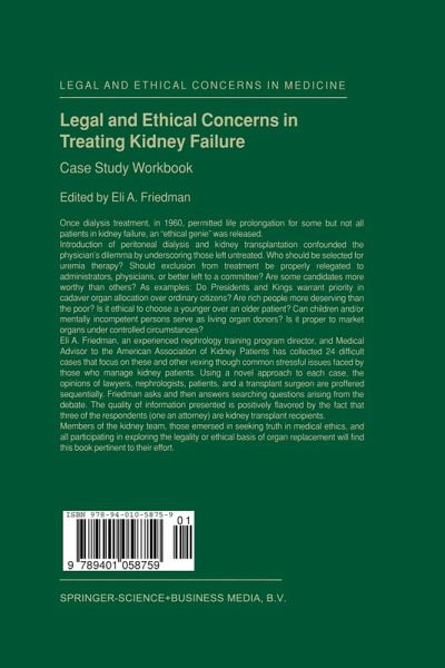 Eli A. Friedman, an experienced nephrology training program director, and Medical Advisor to the American Association of Kidney Patients, has collected 24 difficult cases that focus on these and other vexing though common stressful issues faced by those who manage kidney patients. Using a novel approach to each case, the opinions of lawyers, nephrologists, patients, and a transplant surgeon are proffered sequentially. Friedman asks and then answers searching questions arising from the debate. The quality of information presented is positively flavored by the fact that three of the respondents (one an attorney) are kidney transplant recipients.