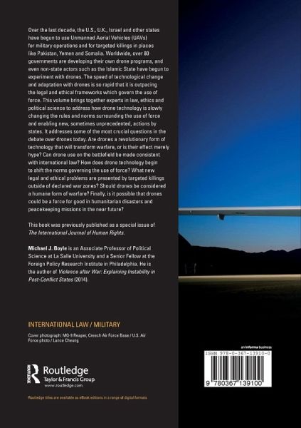Over the last decade, the U.S., UK Israel and other states have begun to use Unmanned Aerial Vehicles (UAVs) for military operations and for targeted killings in places like Pakistan, Yemen and Somalia. Worldwide, over 80 governments are developing their own drone programs, and even non-state actors such as the Islamic State have begun to experiment with drones. The speed of technological change and adaptation with drones is so rapid that it is outpacing the legal and ethical frameworks which govern the use of force. This volume brings together experts in law, ethics and political science to address how drone technology is slowly changing the rules and norms surrounding the use of force and enabling new, sometimes unprecedented, actions by states. It addresses some of the most crucial questions in the debate over drones today. Are drones a revolutionary form of technology that will transform warfare or is their effect merely hype? Can drone use on the battlefield be made wholly consistent with international law? How does drone technology begin to shift the norms governing the use of force? What new legal and ethical problems are presented by targeted killings outside of declared war zones? Should drones be considered a humane form of warfare? Finally, is it possible that drones could be a force for good in humanitarian disasters and peacekeeping missions in the near future? This book was previously published as a special issue of The International Journal of Human Rights.