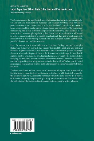 This book addresses the legal feasibility of ethnic data collection and positive action for equality and anti-discrimination purposes, and considers how they could be used to promote the Roma minority's inclusion in Europe. The book's central aim is to research how a societal problem can be improved upon from a legal perspective. The controversy surrounding ethnic data collection and positive action severely limits their use at the national level. Accordingly, legal and political concerns are analysed and addressed in order to demonstrate that it is possible to collect such data and to implement such measures while fully respecting international and European human rights norms, provided that certain conditions are met.