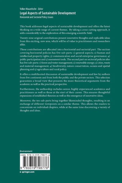 It offers a multifaceted discussion of sustainable development and law by authors from five continents and from both the public and the private sectors. This selection guarantees a broad view that presents the more theoretical arguments from the academic as well as the practical perspective.