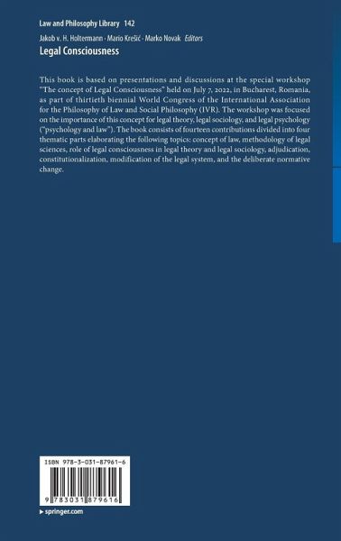 This book is based on presentations and discussions at the special workshop The concept of Legal Consciousness held on July 7, 2022, in Bucharest, Romania, as part of thirtieth biennial World Congress of the International Association for the Philosophy of Law and Social Philosophy (IVR). The workshop was focused on the importance of this concept for legal theory, legal sociology, and legal psychology ( psychology and law ). The book consists of fourteen contributions divided into four thematic parts elaborating the following topics: concept of law, methodology of legal sciences, role of legal consciousness in legal theory and legal sociology, adjudication, constitutionalization, modification of the legal system, and the deliberate normative change.