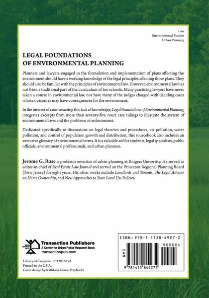 Planners and lawyers engaged in the formulation and implementation of plans affecting the environment should have a working knowledge of the legal principles affecting those plans. They should also be familiar with the principles of environmental law. However, environmental law has not been a traditional part of the curriculum of law schools. Many practicing lawyers have never taken a course in environmental law; nor have many of the judges charged with deciding cases whose outcome may have consequences for the environment. In the interest of counteracting this lack of knowledge, Legal Foundations of Environmental Planning integrates excerpts from more than seventy-five court case rulings to illustrate the system of environmental laws and the problems of enforcement. Dedicated specifically to discussions on legal theories and procedures, air pollution, water pollution, and control of population growth and distribution, this sourcebook also includes an extensive glossary of environmental terms. It is a valuable aid for students, legal specialists, public officials, environmental professionals, and urban planners.