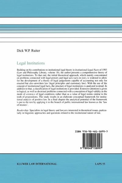 Building on his contributions to institutional legal theory in Institutional Legal Facts of 1993 (Law and Philosophy Library, volume 18), the author presents a comprehensive theory of legal institutions. To that end, the initial theoretical approach, which mainly concentrated on problems connected with legal powers and legal acts (acts-in-law), is widened to allow for the development of a theory of legal judgements capable of accounting not only for enacted but also unwritten law (legal principles and customary law). With the use of the concept of institutional legal facts, the structure of legal institutions is analyzed in detail. In addition to that, a classification of legal institutions is provided. Extensive attention is given to logical, as well as doctrinal problems connected with a conception of legal validity as the mode of existence of legal conditions rather than as a value of legal norms similar to the truth of propositions. The study results in an elaborate conceptual framework for institutional analysis of positive law. In a final chapter the analytical potential of the framework is put to the test by applying it to the branch of public international law known as the `law of treaties'.