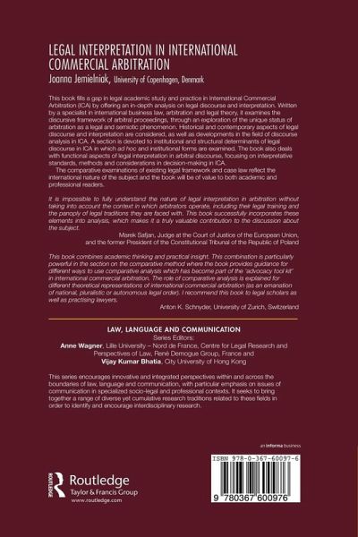 This book fills a gap in legal academic study and practice in International Commercial Arbitration (ICA) by offering an in-depth analysis on legal discourse and interpretation. Written by a specialist in international business law, arbitration and legal theory, it examines the discursive framework of arbitral proceedings through an exploration of t