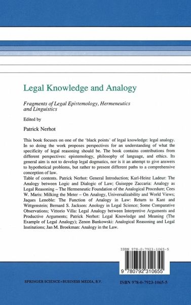 The Analogy between Logic and Dialogic of Law.- Analogy as Legal Reasoning - The Hermeneutic Foundation of the Analogical Procedure.- Milking the Meter - On Analogy, Universalizability and World Views.- The Function of Analogy in Law: Return to Kant and Wittgenstein.- Analogy in Legal Science: Some Comparative Observations.- Legal Analogy between Interpretive Arguments and Productive Arguments.- Legal Knowledge and Meaning (The Example of Legal Analogy).- Analogical Reasoning and Legal Institutions.- Analogy in the Law.
