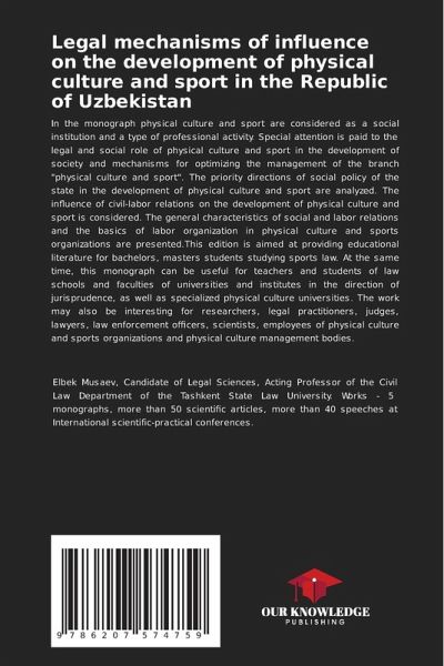 In the monograph physical culture and sport are considered as a social institution and a type of professional activity. Special attention is paid to the legal and social role of physical culture and sport in the development of society and mechanisms for optimizing the management of the branch "physical culture and sport". The priority directions of social policy of the state in the development of physical culture and sport are analyzed. The influence of civil-labor relations on the development of physical culture and sport is considered. The general characteristics of social and labor relations and the basics of labor organization in physical culture and sports organizations are presented.This edition is aimed at providing educational literature for bachelors, masters students studying sports law. At the same time, this monograph can be useful for teachers and students of law schools and faculties of universities and institutes in the direction of jurisprudence, as well as specialized physical culture universities. The work may also be interesting for researchers, legal practitioners, judges, lawyers, law enforcement officers, scientists, employees of physical culture and sports organizations and physical culture management bodies.