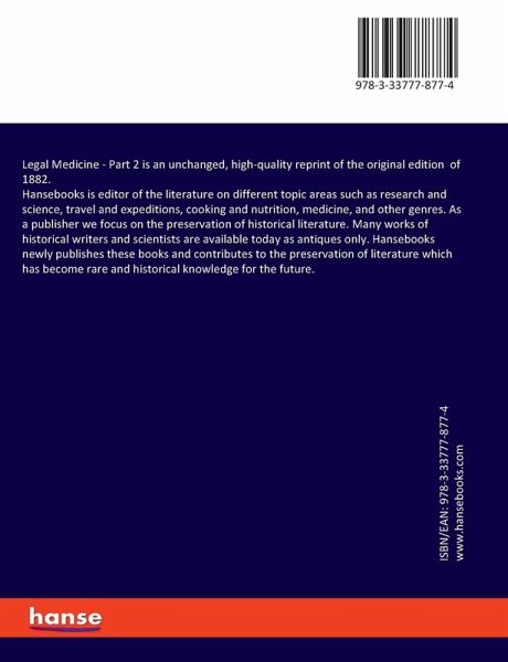 Legal Medicine - Part 2 is an unchanged, high-quality reprint of the original edition of 1882.