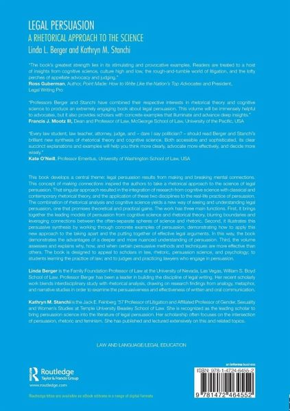 This book develops a central theme: legal persuasion results from making and breaking mental connections. This concept of making connections inspired the authors to take a rhetorical approach to the science of legal persuasion. That singular approach resulted in the integration of research from cognitive science with classical and contemporary rhetorical theory, and the application of these two disciplines to the real-life practice of persuasion. The combination of rhetorical analysis and cognitive science yields a new way of seeing and understanding legal persuasion, one that promises theoretical and practical gains. The work has three main functions. First, it brings together the leading models of persuasion from cognitive science and rhetorical theory, blurring boundaries and leveraging connections between the often-separate spheres of science and rhetoric. Second, it illustrates this persuasive synthesis by working through concrete examples of persuasion, demonstrating how to apply this new approach to the taking apart and the putting together of effective legal arguments. In this way, the book demonstrates the advantages of a deeper and more nuanced understanding of persuasion. Third, the volume assesses and explains why, how, and when certain persuasive methods and techniques are more effective than others. The book is designed to appeal to scholars in law, rhetoric, persuasion science, and psychology; to students learning the practice of law; and to judges and practicing lawyers who engage in persuasion.