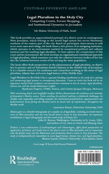 This book offers fresh perspectives on the phenomenon of legal pluralism, on shari'a law in practice and on Palestinian-Israeli relations in the divided city of Jerusalem. The study is based on participant observations in the studied shari'a court in contemporary West Jerusalem, as well as on textual and legal analyses of court cases and rulings, and suggests an organizational-institutional approach to legal pluralism, which examines not only the relations between bodies of law but also the relations between courts of law serving the same population.