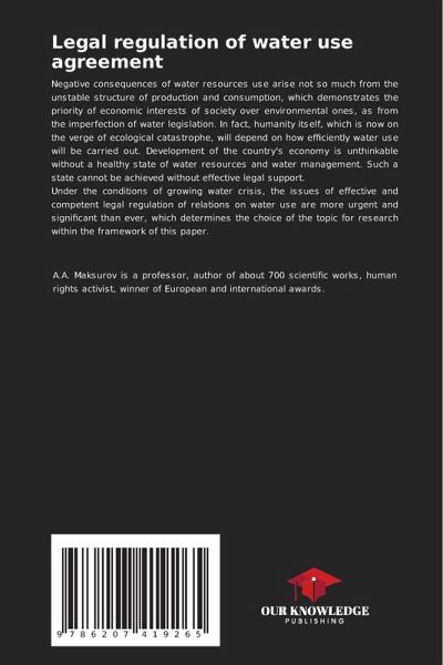 Negative consequences of water resources use arise not so much from the unstable structure of production and consumption, which demonstrates the priority of economic interests of society over environmental ones, as from the imperfection of water legislation. In fact, humanity itself, which is now on the verge of ecological catastrophe, will depend on how efficiently water use will be carried out. Development of the country's economy is unthinkable without a healthy state of water resources and water management. Such a state cannot be achieved without effective legal support. Under the conditions of growing water crisis, the issues of effective and competent legal regulation of relations on water use are more urgent and significant than ever, which determines the choice of the topic for research within the framework of this paper.