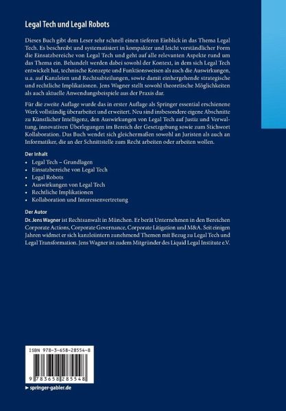 Für die zweite Auflage wurde das in erster Auflage als Springer essential erschienene Werk vollständig überarbeitet und erweitert. Neu sind insbesondere eigene Abschnitte zu Künstlicher Intelligenz, den Auswirkungen von Legal Tech auf Justiz und Verwaltung, innovativen Überlegungen im Bereich der Gesetzgebung sowie zum Thema Kollaboration. Das Buch wendet sich gleichermaßen sowohl an Juristen als auch an Informatiker, die an der Schnittstelle zum Recht arbeiten oder arbeiten wollen.