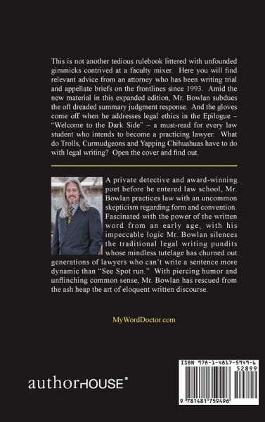 This is not another tedious rulebook littered with unfounded gimmicks contrived at a faculty mixer. Here you will find relevant advice from an attorney who has been writing trial and appellate briefs on the frontlines for two decades. Amid the new material in this expanded edition, Mr. Bowlan subdues the oft dreaded summary judgment response. And the gloves come off when he addresses legal ethics in the Epilogue - "Welcome to the Dark Side" - a must-read for every law student who intends to become a practicing lawyer. What do Trolls, Curmudgeons and Yapping Chihuahuas have to do with legal writing? Open the cover and find out.