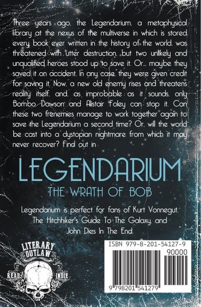 Three years ago, the Legendarium, a metaphysical library at the nexus of the multiverse in which is stored every book ever written in the history of the world, was threatened with utter destruction, but two unlikely and unqualified heroes stood up to save it. Or… maybe they saved it on accident. In any case, they were given credit for saving it. Now, a new old enemy rises and threatens reality itself, and, as improbable as it sounds, only Bombo Dawson and Alistair Foley can stop it. Can these two frenemies manage to work together again to save the Legendarium a second time? Or, will the world be cast into a dystopian nightmare from which it may never recover? Find out in Legendarium: The Wrath of Bob Perfect for fans of Kurt Vonnegut, The Hitchhiker's Guide To The Galaxy, and John Dies In The End.