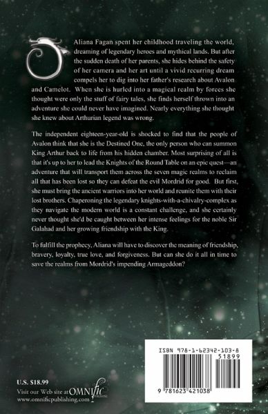 Aliana Fagan spent her childhood traveling the world, dreaming of legendary heroes and mythical lands. But after the sudden death of her parents, she hides behind the safety of her camera and her art until a vivid recurring dream compels her to dig into her father's research about Avalon and Camelot. When she is hurled into a magical realm by forces she thought were only the stuff of fairy tales, she finds herself thrown into an adventure she could never have imagined. Nearly everything she thought she knew about Arthurian legend was wrong. The independent eighteen-year-old is shocked to find that the people of Avalon think that she is the Destined One, the only person who can summon King Arthur back to life from his hidden chamber. Most surprising of all is that it's up to her to lead the Knights of the Round Table on an epic quest-an adventure that will transport them across the seven magic realms to reclaim all that has been lost so they can defeat the evil Mordrid for good. But first, she must bring the ancient warriors into her world and reunite them with their lost brothers. Chaperoning the legendary knights-with-a-chivalry-complex as they navigate the modern world is a constant challenge, and she certainly never thought she'd be caught between her intense feelings for the noble Sir Galahad and her growing friendship with the King. To fulfill the prophecy, Aliana will have to discover the meaning of friendship, bravery, loyalty, true love, and forgiveness. But can she do it all in time to save the realms from Mordrid's impending Armageddon?