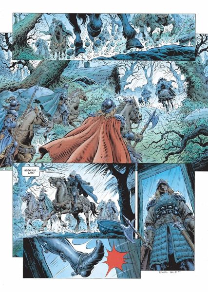 Im tiefen Wald, nahe des Anwesens seines Vaters, trifft Tristan auf Judith, seine Freundin aus Kindestagen. Judith erinnert sich genau an die schmerzhaften Lehrjahre, die Tristan durchlaufen musste, an seine Weigerung, einen unbewaffneten Soldaten zu töten und sich die Grausamkeit zu eigen zu machen, die sein Umfeld von ihm erwartete. Sie erinnert sich auch an die Verbundenheit, die einst zwischen ihnen bestand, und an die Machenschaften von Milo Shaggan, die alles veränderten...Hört die Legende des Fahrenden Ritters! Mit seiner ersten Reihe im Fantasy-Genre eroberte der seinerseits legendäre Comic-Künstler Yves Swolfs (»Durango«, »Der Prinz der Nacht«, »Lonesome«) aus dem Stand die Bestsellerlisten. Weniger High Fantasy à la Tolkien als vielmehr düstere Phantastik im Stile Sapkowskis ist »Legende« ein zeitloses Werk über den Kampf zwischen Gut, Böse und der bestialischen Natur des Menschen, das von Swolfs erzählerisch wie zeichnerisch brillant umgesetzt wird.Splitter veröffentlicht die überarbeitete Neuauflage der Bände 1-6 parallel zur Erstveröffentlichung der Folgebände ab Band 7.