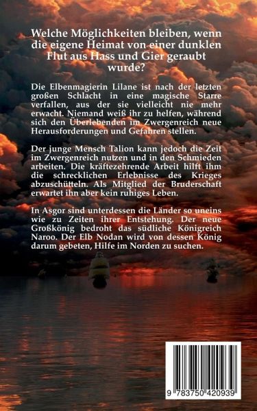 Welche Möglichkeiten bleiben, wenn die eigene Heimat von einer dunklen Flut aus Hass und Gier geraubt wurde?Die Elbenmagierin Lilane ist nach der letzten grossen Schlacht in eine magische Starre verfallen, aus der sie vielleicht nie mehr erwacht. Niemand weiss ihr zu helfen, während sich den Überlebenden im Zwergenreich neue Herausforderungen und Gefahren stellen.Der junge Mensch Talion kann jedoch die Zeit im Zwergenreich nutzen und in den Schmieden arbeiten. Die kräftezehrende Arbeit hilft ihm die schrecklichen Erlebnisse des Krieges abzuschütteln. Als Mitglied der Bruderschaft erwartet ihn aber kein ruhiges Leben.In Asgor sind unterdessen die Länder so uneins wie zu Zeiten ihrer Entstehung. Der neue Grosskönig bedroht das südliche Königreich Naroo. Der Elb Nodan wird von dessen König darum gebeten, Hilfe im Norden zu suchen.Ein atemberaubendes Epos voller Magie und Ehre - aber auch Verrat!Über das Buch:Bei "Legenden von Asgor - Dunkle Flut" handelt es sich um den zweiten Teil einer mehrteiligen Fantasy Saga. Eine aussergewöhnliche, magische Fantasiewelt wartet nur darauf, entdeckt zu werden. Beliebte Fantasy Gestalten, wie Elben, Zwerge, Orks und Drachen aber auch noch ganz unbekannte Wesen leben in dieser Welt. Dramatische Schlachten und magische Kämpfe erwarten die mutigen Helden. Sie müssen der Gefahr trotzen und ihren Mut beweisen, um ihr aller Leben zu bewahren. Doch gibt es überhaupt Hoffnung für sie?