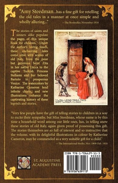 The stories of saints and sinners alike populate the pages of this unique book for children. Under the author's loving touch, these enchanting tales come alive with scenes of old Italy, from the poor but generous Saint Zita in her native Lucca to the captive Turkish Princess Stellante and her beloved Bartolo in prosperous Venice. Each of these widely varied characters must face their own struggle against the selfish desires of this world in order to achieve true happiness, both here and in the hereafter. The watercolors by Katharine Cameron add infinite charm, and new illustrations enhance the captivating history of these legends and stories.