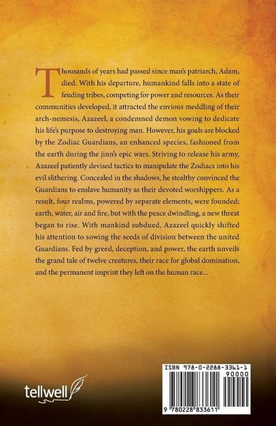Thousands of years had passed since man's patriarch, Adam, died. With his departure, humankind falls into a state of feuding tribes, competing for power and resources. As their communities developed, it attracted the envious meddling of their arch-nemesis, Azazeel, a condemned demon vowing to dedicate his life's purpose to destroying man. However, his goals are blocked by the Zodiac Guardians, an enhanced species, fashioned from the earth during the jinn's epic wars. Striving to release his army, Azazeel patiently devised tactics to manipulate the Zodiacs into his evil slithering. Concealed in the shadows, he stealthy convinced the Guardians to enslave humanity as their devoted worshippers. As a result, four realms, powered by separate elements, were founded; earth, water, air and fire, but with the peace dwindling, a new threat began to rise. With mankind subdued, Azazeel quickly shifted his attention to sowing the seeds of division between the united Guardians. Fed by greed, deception, and power, the earth unveils the grand tale of twelve creatures, their race for global domination, and the permanent imprint they left on the human race...