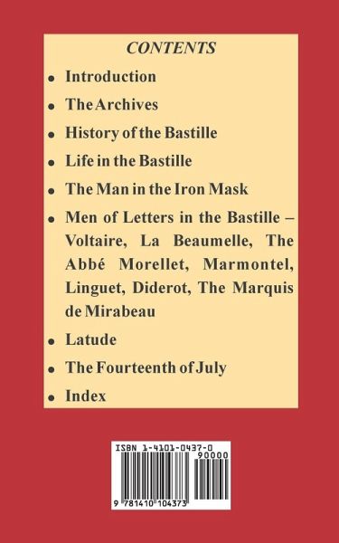 CONTENTS Introduction The Archives History of the Bastille Life in the Bastille The Man in the Iron Mask Men of Letters in the Bastille - Voltaire, La Beaumelle, The Abbé Morellet, Marmontel, Linguet, Diderot, The Marquis de Mirabeau Latude The Fourteenth of July Index
