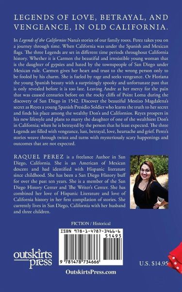 Legends of love, betrayal, and vengeance, in Old California. In Legends of the Californios Nana's stories of our family roots. Perez takes you on a journey through time. When California was under the Spanish and Mexican flag. The three Legends are set in different time periods throughout California history. Whether it is Carmen the beautiful and irresistible young beauty that is the daughter of gypsies and hated by the townspeople of San Diego under Mexican rule. Carmen gives her heart and trust to the wrong person only to be fooled by his charm. She is fueled by rage and seeks vengeance. Or Floriana the young Spanish beauty with a surprisingly spooky and unfortunate past that is only revealed before it is too late. Leaving Andre at her mercy for the pain that was caused centuries before on the rocky cliffs of Point Loma during the discovery of San Diego in 1542. Discover the beautiful Mestizo Magdalena's secret as Reyes a young Spanish Presidio Soldier who learn the truth to her secret and finds his place among the wealthy Don's and Californios. Reyes prospers in his new lifestyle and plans to marry the daughter of one of the wealthiest Dons in California; when he is betrayed by the person that he least expected. The three Legends are filled with vengeance, lust, betrayal, love, heartache and grief. Perez's stories weave through twists and turns with mysteriously scary happenings and outcomes that are not expected.