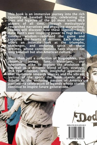 This book is an immersive journey into the rich tapestry of baseball history, celebrating the lives and legacies of the 50 most iconic MLB players of all time. Through meticulously researched narratives and engaging storytelling, readers will discover how these legends-from Babe Ruth's awe-inspiring power to Yogi Berra's timeless wisdom-redefined the game and captured the hearts of millions. Each chapter offers an intimate look at the triumphs, challenges, and enduring spirit of these athletes, whose contributions have shaped not only baseball but also American culture. More than just a collection of biographies, this chronicle invites fans, historians, and newcomers alike to explore the evolution of baseball as a dynamic blend of art, strategy, and raw emotion. With insightful appendices that illuminate research sources and the vibrant lexicon of the sport, the book stands as a tribute to the enduring passion of America's pastime-a celebration of legends whose stories continue to inspire future generations.