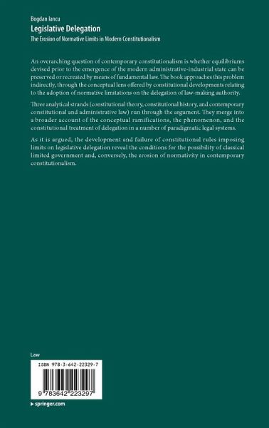 An overarching question of contemporary constitutionalism is whether equilibriums devised prior to the emergence of the modern administrative-industrial state can be preserved or recreated by means of fundamental law. The book approaches this problem indirectly, through the conceptual lens offered by constitutional developments relating to the adoption of normative limitations on the delegation of law-making authority.